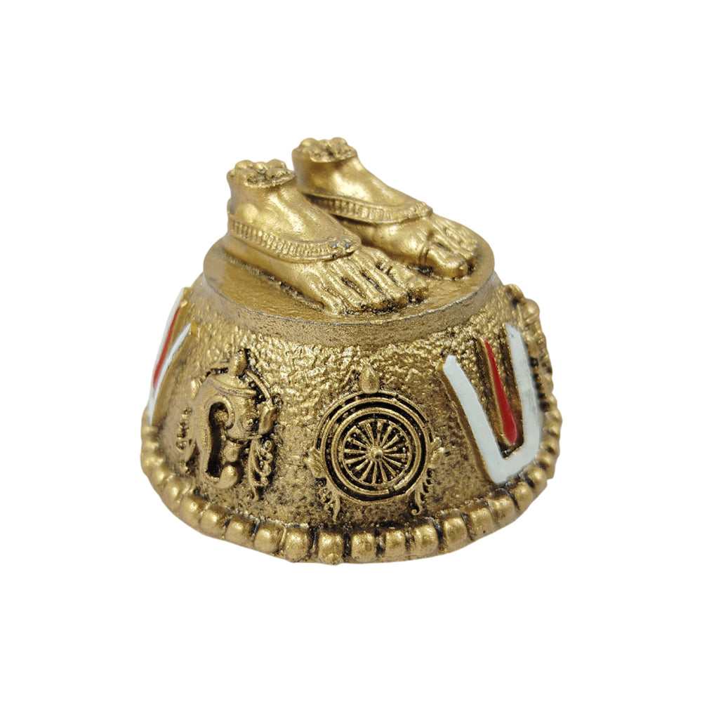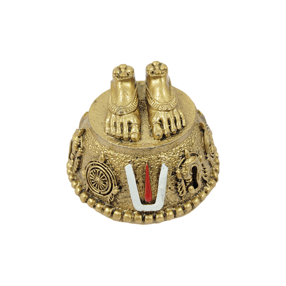 - Intricate Craftsmanship: This golden-finished base is beautifully detailed, featuring the sacred Thirunamam, Sangu (Conch), and Chakram (Discus).