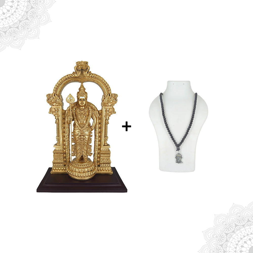 Invite divine strength and spiritual protection into your life with this Thiruchendur Murugan Statue with Karungali Mala — a meaningful devotional accessory for everyday faith.